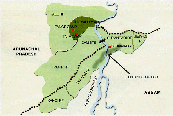 Tale Valley WLS. Map source : Sanctuary Asia.Vol.XXII No.5,October 2002